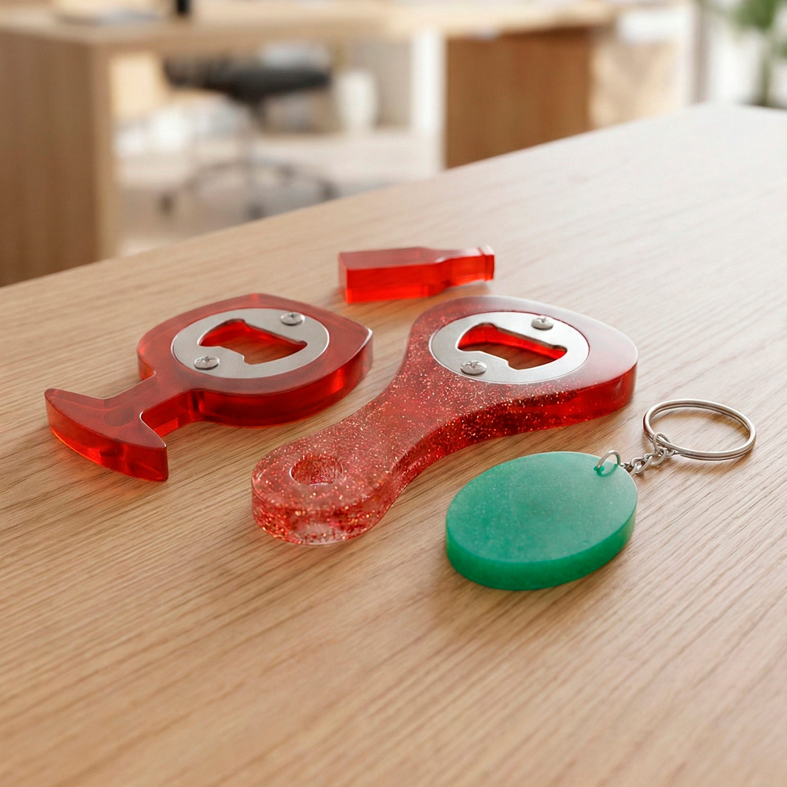 Brindis con estilo y durabilidad Olvídate de los destapadores aburridos. Nuestros abridores de botellas están diseñados no solo para ser herramientas funcionales, sino piezas de conversación. Su construcción en resina epoxi garantiza que sean ligeros pero extremadamente resistentes.